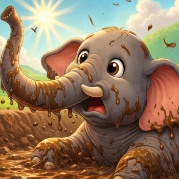 ช้างผู้มั่นใจในพละกำลังเพิกเฉยต่อคำเตือนของมดตัวน้อยจนพลาดเหยียบพื้นดินอ่อนและติดหลุมโคลนด้วยตัวเอง เหตุการณ์นี้ทำให้ช้างเข้าใจว่า การมองข้ามเรื่องเล็ก ๆ อาจทำให้เกิดผลเสียใหญ่หลวงได้