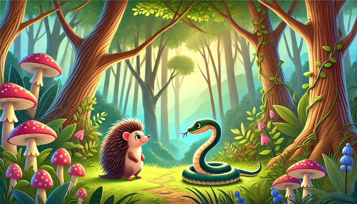ใจกลางป่าเขาที่อุดมสมบูรณ์ มีเม่นน่าสงสารตัวหนึ่งเดินเร่ร่อนหาที่อยู่อาศัย สภาพของมันทั้งหิวโซ และอิดโรยจากการเดินทางเร่ร่อนมานาน จนมาพบพวกงูใจดีตัวหนึ่งกำลังขดอยู่ที่พื้น
