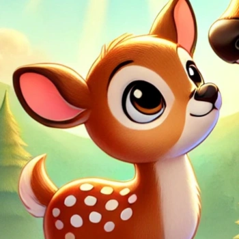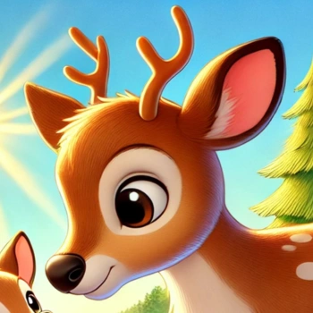 ลูกกวางซุกซนวิ่งเล่นจนเกือบถูกเจ้าหมาป่าจับกิน แต่พ่อกวางรีบเข้ามาช่วยจนตัวเองบาดเจ็บ ลูกกวางจึงเข้าใจว่า ความรักของพ่อไม่ได้อยู่ในคำพูด แต่แสดงออกด้วยการปกป้องอย่างไม่หวังสิ่งตอบแทน